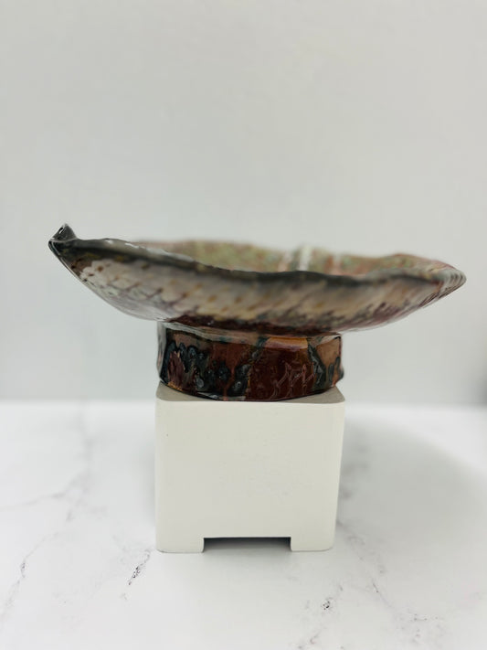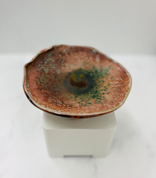 Soda Fired, Green/Gold Luster Porcelain Torn Edge Dish